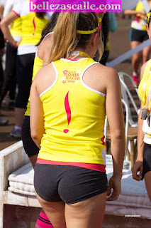 Fotos de mujeres hermosas haciendo ejercicio con ropa diminuta, esta bella rubia nos enseña su cuerpaso con unos micro shorts muy entallados, que no dejan nada a la imaginación,  y podemos apreciar sus ricas piernas bien torneadas, su rico trasero bien paradito, su cinturita, todo, también se le marca la tanga, aparte ella se da cuenta que le están sacando fotos y con sus amigas regalan un saludo y una bella sonrisa a la cámara. Créditos comoadoro.